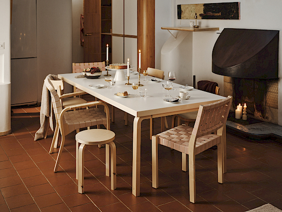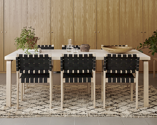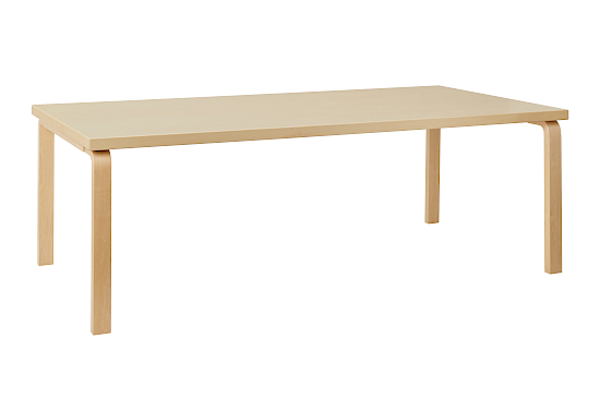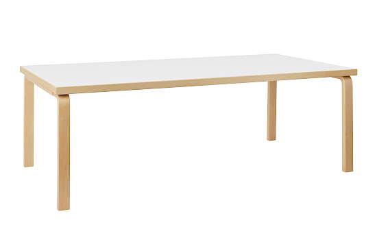 Der Aalto Table 86, 1935 von Architekt Alvar Aalto für Artek entworfen, ist ein zeitloses Meisterwerk nordischer Designkunst, das lässige Anmut mit funktionaler Vielseitigkeit vereint. In Finnland aus PEFC-zertifiziertem Birkenholz gefertigt, strahlt er eine organische Wärme aus. Der Tisch gehört zur ikonischen L-Leg-Kollektion und zeichnet sich durch seine charakteristischen L-förmigen Beine aus, die Stabilität und ästhetische Leichtigkeit verbinden. Seine rechteckige Tischplatte, erhältlich in naturbelassener Birke, weissem Laminat, schwarzem Linoleum oder in limitierten Sonderfarben wie Hellblau und Hellgrün, fügt sich mühelos in moderne, minimalistische oder klassische Einrichtungen ein. Die Wahl der Materialien – Birkenfurnier für natürliche Eleganz, Linoleum für eine weiche Schreiboberfläche oder Laminat für robuste Pflegeleichtigkeit – macht den Tisch ideal für vielseitige Einsatzmöglichkeiten, von Essbereichen über Homeoffices bis hin zu öffentlichen Räumen wie Cafés oder Büros. Der Aalto Table 86 ist besonders geeignet für grosse Räume, wo er als Esstisch, Schreibtisch oder Ablagefläche dient, und harmoniert perfekt mit Stühlen aus der Artek-Kollektion, wie dem Hocker 60 oder Stuhl 66. Seine schlichte, aber ausdrucksstarke Form verleiht jedem Raum eine einladende Atmosphäre.
