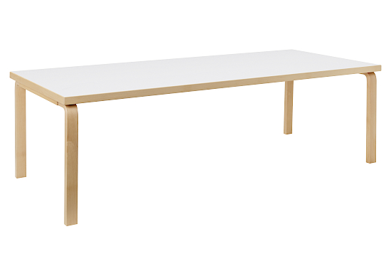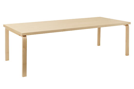 Der Aalto Table 86A, 1935 von Architekt Alvar Aalto für Artek entworfen, ist ein zeitloses Meisterwerk nordischer Designkunst, das lässige Anmut mit funktionaler Vielseitigkeit vereint. In Finnland aus PEFC-zertifiziertem Birkenholz gefertigt, strahlt er eine organische Wärme aus. Der Tisch gehört zur ikonischen L-Leg-Kollektion und zeichnet sich durch seine charakteristischen L-förmigen Beine aus, die Stabilität und ästhetische Leichtigkeit verbinden. Seine rechteckige Tischplatte, erhältlich in naturbelassener Birke, weissem Laminat, schwarzem Linoleum oder in limitierten Sonderfarben wie Hellblau und Hellgrün, fügt sich mühelos in moderne, minimalistische oder klassische Einrichtungen ein. Die Wahl der Materialien – Birkenfurnier für natürliche Eleganz, Linoleum für eine weiche Schreiboberfläche oder Laminat für robuste Pflegeleichtigkeit – macht den Tisch ideal für vielseitige Einsatzmöglichkeiten, von Essbereichen über Homeoffices bis hin zu öffentlichen Räumen wie Cafés oder Büros. Der Aalto Table 86A ist besonders geeignet für grosse Räume, wo er als Esstisch, Schreibtisch oder Ablagefläche dient, und harmoniert perfekt mit Stühlen aus der Artek-Kollektion, wie dem Hocker 60 oder Stuhl 66. Seine schlichte, aber ausdrucksstarke Form verleiht jedem Raum eine einladende Atmosphäre.