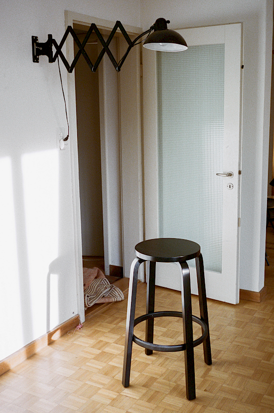 | Sitzflächenvarianten | Birkenfurnier, Hochdrucklaminat, Linoleum, Stoffbezug und PU-Schaumpolsterung, Lederbezug und PU-Schaumpolsterung, Lederbezug |