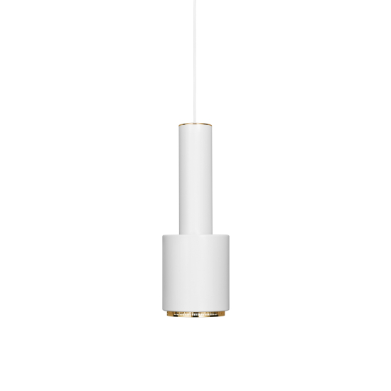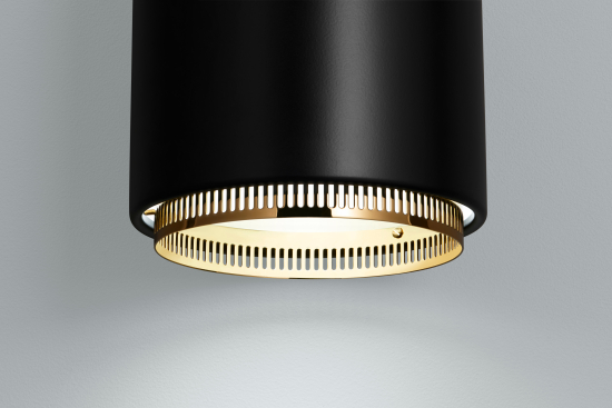 Diese elegante Pendelleuchte trägt aufgrund ihrer markanten Form den Spitznamen „Handgranate“. Die Pendelleuchte A110 besteht aus einem lackierten Stahlschirm und einem Innenring und sorgt für eine außergewöhnlich warme Lichtqualität. Die Hängelampe strahlt sowohl direktes als auch indirektes Licht an die Decke, und ihr perforierter Innenring erzeugt einen Halo-Effekt um die Leuchte herum und reduziert gleichzeitig die Blendung. „Hand Grenade“ wurde für das Gebäude entworfen, das Alvar Aalto für den finnischen Ingenieurverband geschaffen hat.