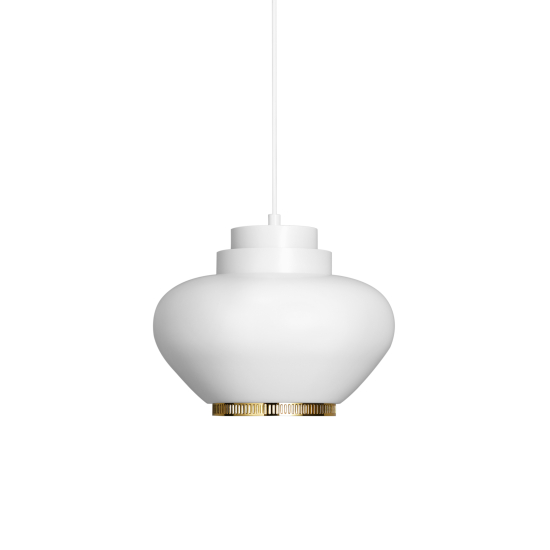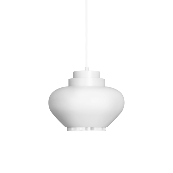 Die A333, wegen ihrer organischen Form auch als „Turnip“ (Rübe) bekannt, verbindet Eleganz mit Schlichtheit und erzielt damit eine atemberaubende Wirkung. Im Betrieb strahlt Licht durch die kreisförmigen Aussparungen im oberen Bereich des Lampenschirms und betont so die runde Form der Pendelleuchte. „Turnip“ wurde für das Gebäude des Nationalen Renteninstituts in Helsinki entworfen.