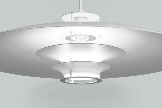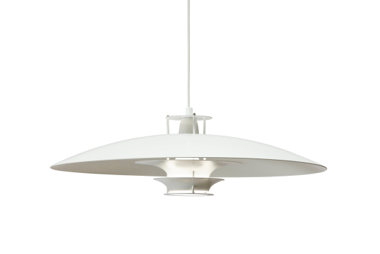 Der Architekt Juha Leiviskä hat die Schönheit der Einfachheit entdeckt und diese grosszügige Hängelampe aus leichtem weissem Aluminium entworfen. Die Leuchte hängt mühelos an einem einzigen weissen Kabel, während ihr dünner, scheibenförmiger Schirm mit einem hellen Schein leuchtet und ein zartes, warmes Licht ausstrahlt.