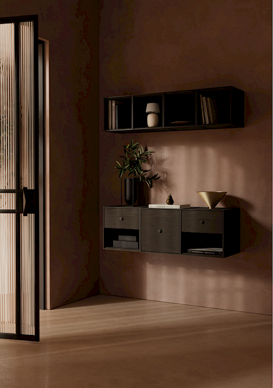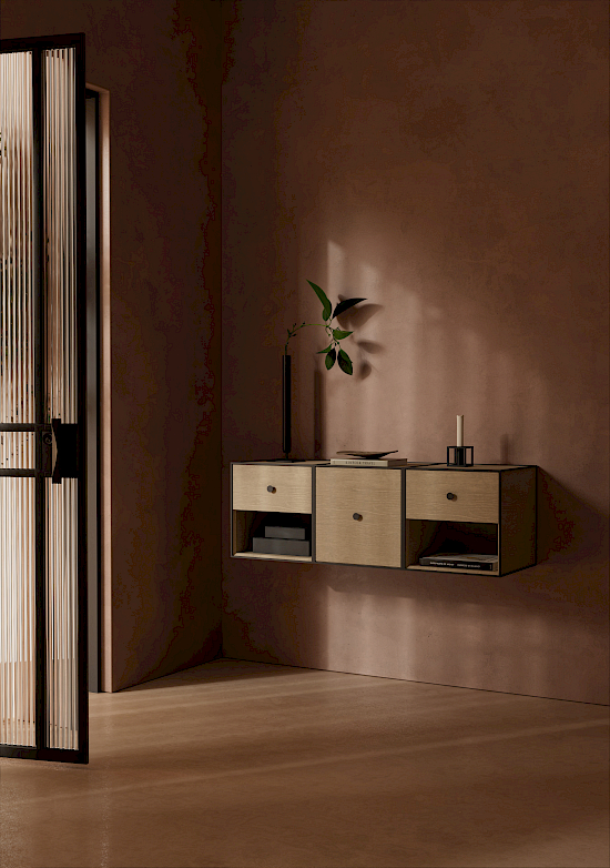 Frame 35 ist eine flexible Aufbewahrungslösung, die aus einem quadratischen Modul in einem kubistischen Rahmen besteht. Das einfache Aufbewahrungssystem ist von Mogens Lassens ikonischem Kerzenständer Kubus inspiriert und basiert auf einer strengen mathematischen Formel. Die mit grösster Präzision gefertigten Frame-Module sind in vier Grössen erhältlich und können an die Wand gehängt oder auf den Boden gestellt werden. Die Frame-Module sind frei kombinierbar, um ein Bücherregal, einen Raumteiler oder etwas ganz anderes zu schaffen – die Möglichkeiten sind endlos. Sie sind mit oder ohne Türen, Einlegeböden und Schubladen erhältlich, so dass die perfekte Aufbewahrungslösung für jedes Bedürfnis geschaffen wird.