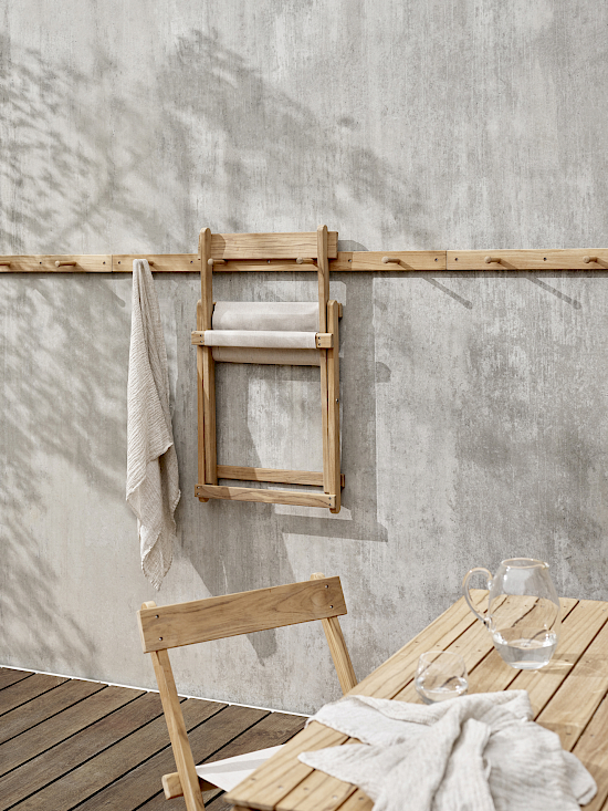 In den späten 1960er-Jahren entwickelte der dänische Möbeldesigner Børge Mogensen die Outdoor-Möbelserie Deck Chair Series, zu der auch der perfekt proportionierte BM3670 Dining Table gehört. Der Tisch aus massivem, unbehandeltem und FSC™-zertifiziertem Teakholz zeichnet sich durch eine geradlinige Silhouette und sorgfältig durchdachte Details aus, darunter sanft abgerundete Enden und Nieten, die mit dem exakt gleichen Abstand angebracht wurden. Der Tisch war ursprünglich für Mogensens privaten Balkon konzipiert und lässt sich bei Nichtgebrauch flach zusammenklappen. Er kann mit der entsprechenden Wandhalterung der Serie als dekoratives, architektonisches Objekt aufgehängt werden.