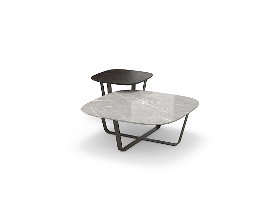 Als kleinen, durchaus nützlichen, Begleiter, dient dem bodennahen Hochlehner-Sofa Nook ein formschöner Beistelltisch gleichen Namens. Mit seinen abgerundeten Ecken greift die Tischplatte, wahlweise in Massivholz Eiche und Esche natur, Nussbaum natur geölt, Eiche dunkel offenporig lackiert, Naturstein wie Mamor, Kalkstein und Serpentinit, MDF lackiert oder pulverbeschichtet, die Kontur des Sofas auf und unterstreicht seine kompakte, dennoch leicht wirkende Form. Vier unterschiedlich grosse Tische ermöglichen gestalterischen Spielraum sowie eine Kombinationsmöglichkeit untereinander. Das aus Aluminium gefertigte Untergestell erinnert an zwei breite, sich kreuzende Gurte. Sie verleihen Stabilität, wirken dabei luftig elegant. Die geometrisch wirkenden Tische können perfekt individualisisert werden und passen dadurch in unterschiedliche Wohnungsstile und zu vielen Möbeln.