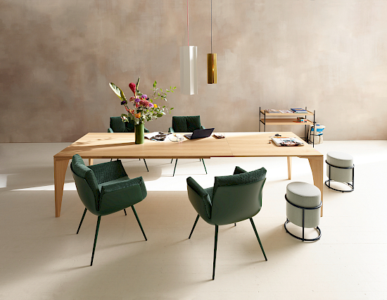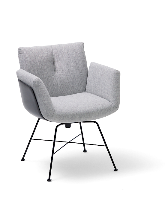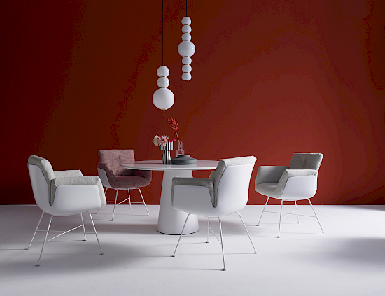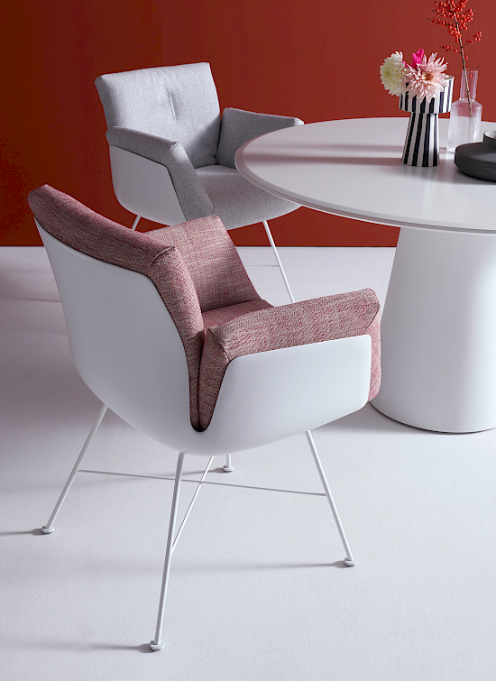 Warum entscheiden, wenn man das Beste aus zwei Welten haben kann?, fragten sich die Designer von Jehs & Laub und entwarfen Alvo, diesen sesseligen Stuhl mit der edlen, matten Schale und den gemütlichen Sitzpolstern. Er ist so weich, dass man in ihm schier endlos am Tisch sitzen kann. Und weil es ihn außerdem in zig Variationen gibt, stellt er wirklich jeden Geschmack zufrieden. Er ist mit sieben Gestellvarianten und unzähligen Polster- und Farbvarianten erhältlich. Alvo vermittelt Geborgenheit, egal ob im geschäftlichen oder privaten Bereich. Auch bei längeren Tafel- oder Diskussionsrunden sitzt man weich „gebettet“ und ganz entspannt. Der Spalt zwischen Rücken- und Armlehne sorgt für eine angenehme Flexibilität im Rücken und dauerhafte Bequemlichkeit.