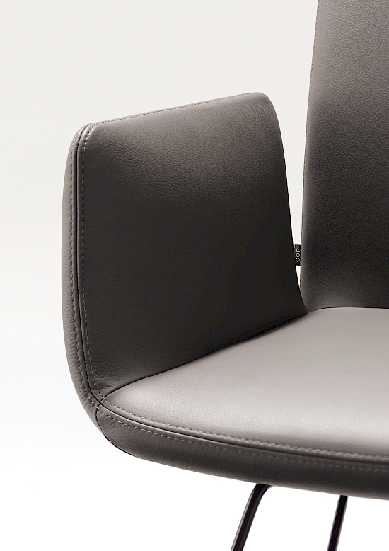 Kissen sind archetypische Sitzmöbel, besonders in den arabischen Ländern. Mit den Jalis Stühlen werden sie auf europäisches Sitzniveau gehoben und zum Stuhl verwandelt. Was aussieht wie ein Kissen mit Knick, ist ein aufwändig gepolstertes, stabil konstruiertes Sitzmöbel und ein Verwandter des gleichnamigen vom Orient inspirierten Jalis Sofas. Ein schöner Kontrast dazu ist die filigran wirkende Unterkonstruktion. Zur Wahl stehen fünf verschiedene Gestelle. Die Jalis Kollektion enthält neben Sofa und Stuhl ebenfalls Sessel, Barstühle und einen Couchtisch.