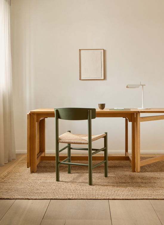 Der Bibliothekstisch BM71 spiegelt Børge Mogensens funktionalen Designansatz wider, bei dem jedes einzelne Detail einen bestimmten Zweck erfüllt und jedes Mass perfekt abgestimmt ist. Nach dem traditionellen englischen Klappbeinsystem lässt sich die Länge der Tischplatte mit Klappflügeln verdoppeln. Bei Nichtgebrauch lassen sich die Klappflügel vertikal einklappen. Das Ergebnis ist ein klares, rechteckiges Profil und ein praktisches, vielseitiges Designs aus Eiche. Ideal für kleine Esszimmer, Home-Offices oder Bibliotheken, wo Platz knapp ist, bietet er stabile Stützen und eine natürliche Patina, die sich mit der Zeit verstärkt. Die Oberfläche ist in geöltem oder lackiertem Eichenholz erhältlich. Handgefertigt in Fredericias Werkstatt, unterstreicht der Tisch Nachhaltigkeit durch hochwertige, reparierbare Materialien und passt nahtlos in moderne oder klassische Einrichtungen, wo er Alltagsnutzung mit unaufdringlicher Eleganz bereichert.