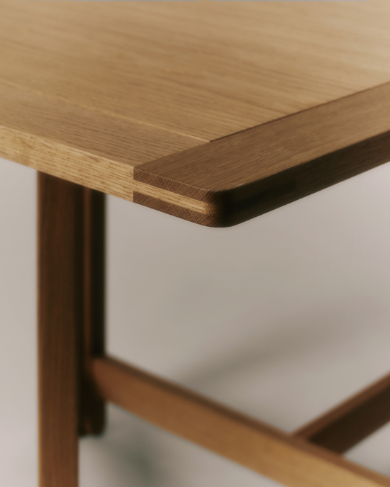 | Material | Massivholzgestell und furnierte Eichenplatte in massiven Gestellteilen |