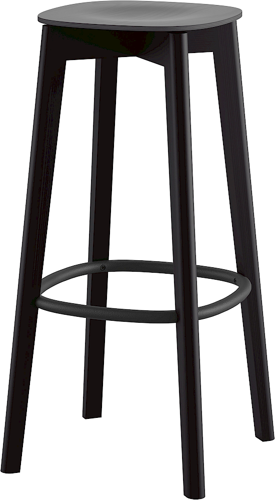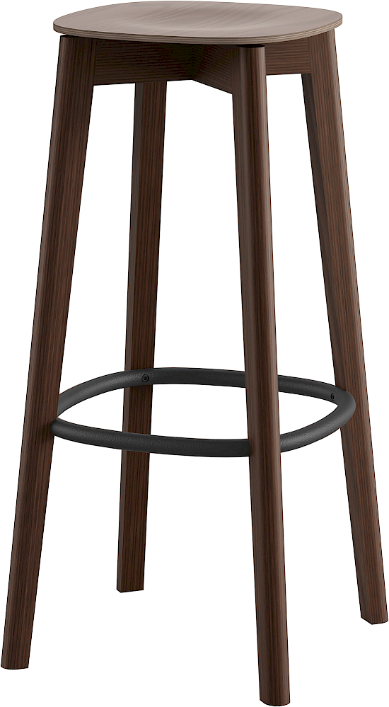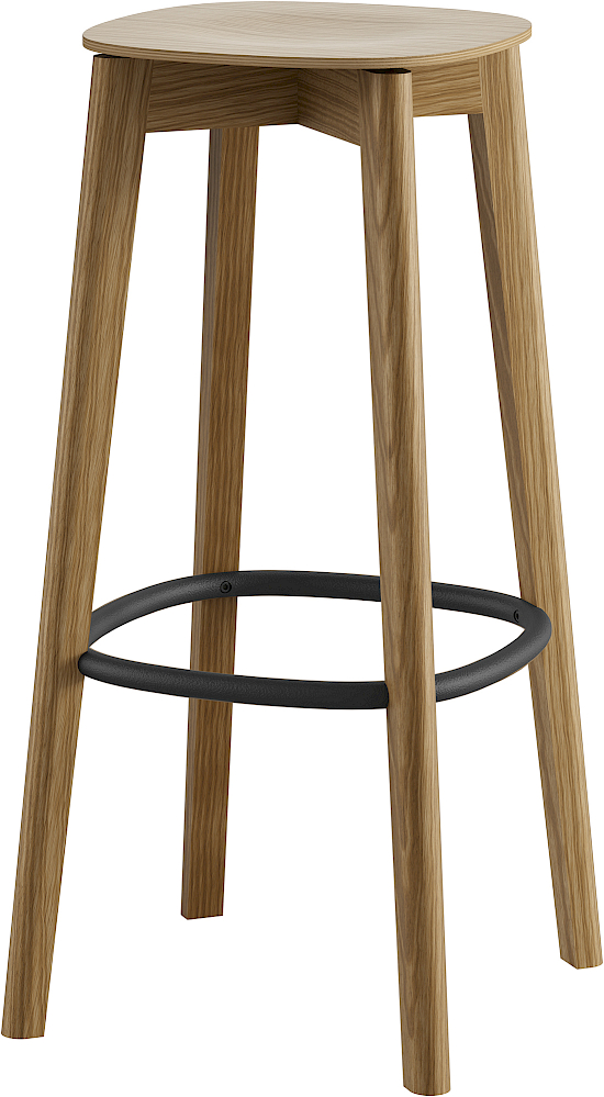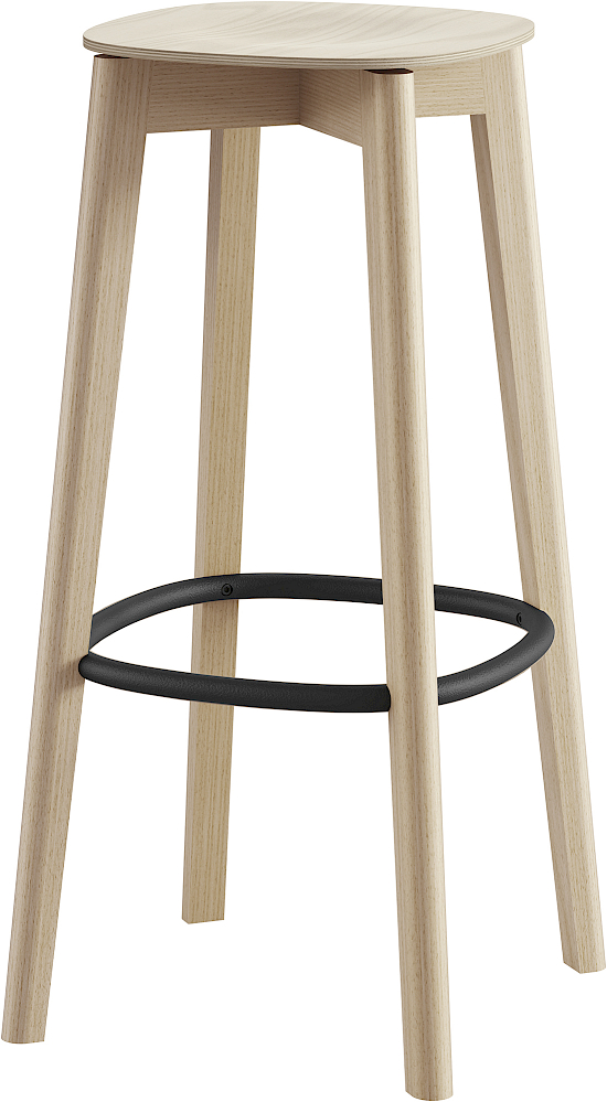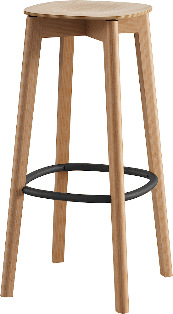 Barhocker aus Holz mit Metallfussring