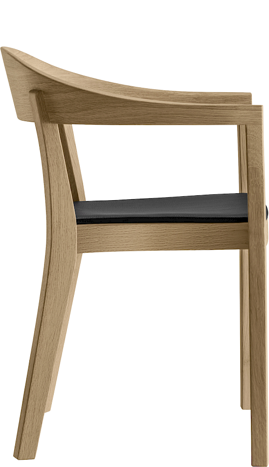 klio erscheint zeitgemäss und archetypisch zugleich. Durch die Symbiose von traditionellem Handwerk und modernster Fertigungstechnik wird die anspruchsvolle Geometrie des schweren Holzstuhls möglich. Der Rücken, der fliessend in die Armlehnen übergeht, wird auf einer eigens nach unseren Angaben konstruierten Maschine, aus einem 13,8 Kilo schweren Stück gedämpften Holzes – wahlweise Buche oder Eiche – gebogen. Nach drei Wochen in der Trockenkammer wird die Lehne mit modernster CNC-Technologie in Form gefräst und danach per Hand fein geschliffen. Die raffiniert geschwungene Lehne steht im Kontrast zum Korpus mit seinen präzisen Kanten. Mit der soliden Konstruktion und der ergonomisch geformten Sitzfläche entsteht ein sehr komfortabler Stuhl. Der charaktervolle klio bringt ein Stück Poesie in die klare Welt von horgenglarus. Er verbindet die formal zweigeteilte Kollektion. Neben runden, organischen Formen stehen kantige, geradlinige Entwürfe. klio ist eine Synthese beider Welten. klio gibt es als Stuhl mit kurzer und als Sessel mit langer Armlehne.