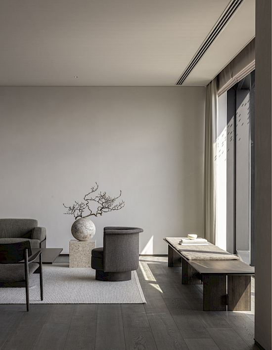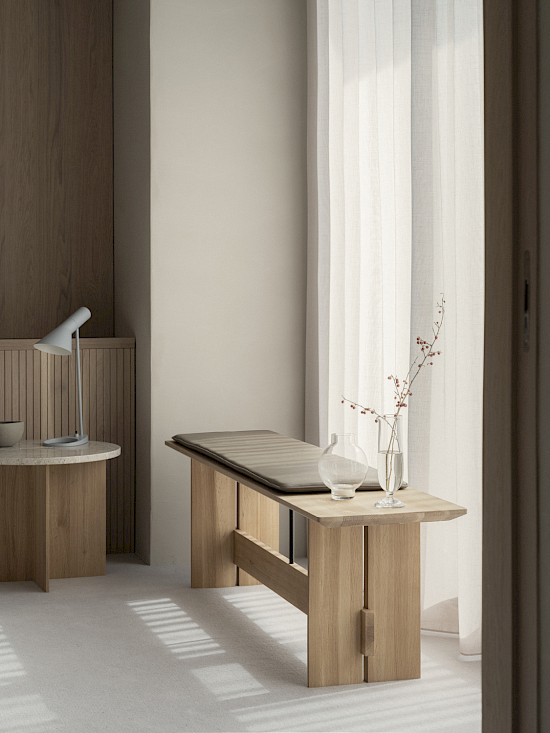 Die Azabu Residence Collection hat ihre Heimat in einem 1988 erbauten Luxusappartement im ruhigen Wohnviertel Minato in Tokio. Die Wohnung wurde auf einem grosszügigen und luftigen Grundstück gebaut, wie man es heute in Tokio nur noch selten findet. Das den Eingang umgebende Grün, das die Besucher auf harmonische Weise empfängt und ein Gefühl der Ruhe und Verbundenheit mit der Natur vermittelt, wird von Gärtnern sorgfältig gepflegt. Die Inneneinrichtung wurde von Keiji Ashizawa Design und Norm Architects entworfen und kombiniert wie in den vorherigen Fällen japanische und skandinavische Designprinzipien und Ästhetik. Ein gemeinsamer Glaube an die Verwendung natürlicher Materialien und eine gedeckte Farbpalette bilden die Grundlage des Projekts, das sich durch den Fokus auf taktile, sanft-minimale und zeitlose Qualitäten auszeichnet.
