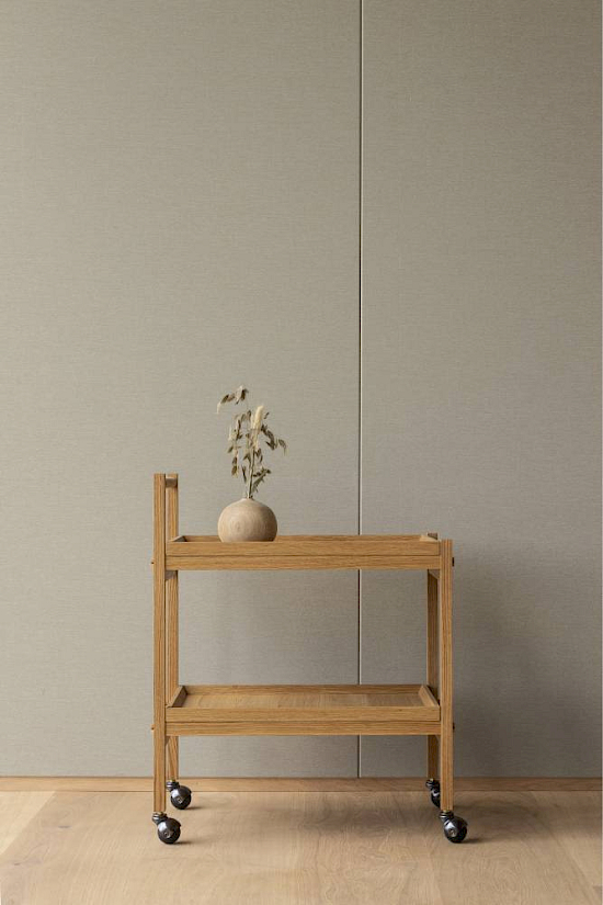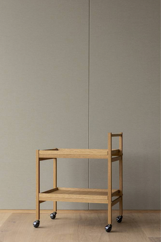 Der Servierwagen N-T01 ist inspiriert von den Schirm- und Schuhregalen am Eingang von japanischen Tempeln und Schreinen. Mit dem Ziel, viele der bestehenden Details der Kollektion in das Design zu integrieren, wurden kontrastfarbene Tischlerarbeiten hinzugefügt - eine Konstruktion, die der des Regalsystems ähnelt - sowie einen Griff aus Papiergeflecht, um die Taktilität zu verbessern und einen Zusammenhang zwischen den Kollektionen herzustellen.