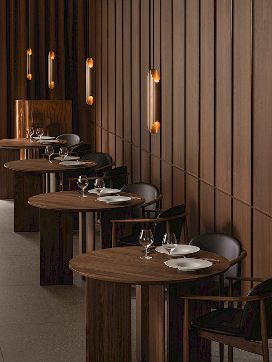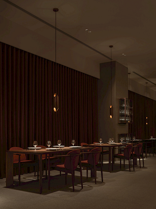 Das Logy Taipei Collection ist in einem auf moderne asiatische Küche spezialisierten Fine-Dining-Restaurant im Geschäftsviertel Neihu in Taipeh untergebracht, wo viele Hightech-Unternehmen ansässig sind. Der Name ist inspiriert von der Endung in Wörtern wie „Geologie“ und „Meteorologie“, die für Wissen und Theorie stehen. Er erinnert auch an das japanische Wort „roji“ (Gasse), das auf ein verstecktes kulinarisches Juwel in der Stadt hinweist. Das Team von Keiji Ashizawa Design hat die Inneneinrichtung und die aktualisierten, massgeschneiderten Esszimmerstühle A-DC05 für das Restaurant entworfen, die die 11. Kollektion von Karimoku Case bilden. Sie schaffen einen beruhigenden Rhythmus im Raum und verleihen der weitläufigen Umgebung sowohl Akzente als auch ein Gefühl von Intimität - sowohl in der Designsprache als auch durch die Materialkompositionen.