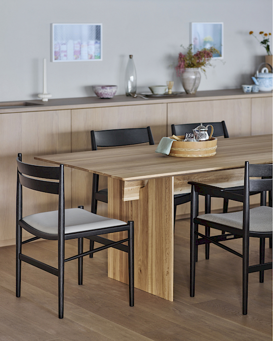 Das Design des N-DC04 Dining Chair entspringt der Idee, einen Holzstuhl mit einem geradlinigen Ausdruck zu schaffen, der dennoch die handwerklichen und hochtechnologischen Qualitäten beibehält, die Karimoku seit Jahrzehnten perfektioniert hat. Während der Stuhl hauptsächlich aus geraden Elementen besteht, wurde eine einzelne abgewinkelte Strebe hinzugefügt, um dem Stuhl eine Richtung und einen Charakter zu geben - so dass sich das Möbel mit seinem klaren und modernen Ausdruck für eine Vielzahl von Innenräumen eignet.