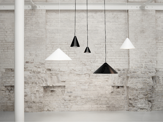 Die ausgefallene galvanisierte Oberfläche der Pendelleuchte Keglen verkörpert Feinheit und Robustheit gleichzeitig. Ziel des Entwurfs von Keglen war es, eine systematische Formensprache zu schaffen, die die Möglichkeit für eine Vielzahl von Lichttypologien bietet. Mit anderen Worten, Bjarke Ingels, Jakob Lange und das Designteam von BIG Ideas wollten eine Kollektion entwickeln, die in der gleichen Qualität und im selben Design, jedoch in verschiedenen Grössen mit jeweils einer eigenen Persönlichkeit erhältlich ist. Die grösste der vier Pendelleuchten passt perfekt in verschiedene Bereiche von Restaurants und Konferenzräumen, während die kleinste Pendelleuchte für ein wohligeres Licht im Privaten sorgt. Die Hängelampe kann sowohl einzeln als auch in bestimmten Formationen in derselben oder verschiedenen Grössen aufgehängt werden.