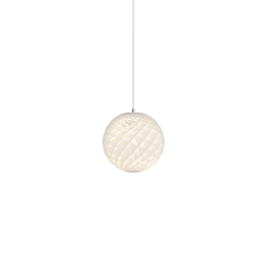 Die kugelförmige Pendelleuchte strahlt einen blendfreien Lichtschein ab, der von den kleinen rautenförmigen Zellen reflektiert wird, aus denen sich die Leuchte zusammensetzt. Durch die Struktur der Leuchte wird sichergestellt, dass das Licht ab einem Blickwinkel von 45 Grad blendfrei ist. Gleichzeitig strahlt die Leuchte nach unten gerichtetes Licht sowie einen Lichtschein nach oben ab, der die Decke beleuchtet und so die Umgebung in eine angenehme Atmosphäre taucht. Jede einzelne Zelle verleiht dem Licht Form. Es entstehen sanfte Übergänge zwischen direktem und reflektiertem Licht, wodurch die bemerkenswerte Strahlkraft der kugelförmigen Leuchte besonders betont wird.