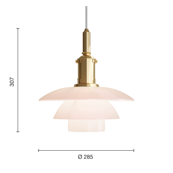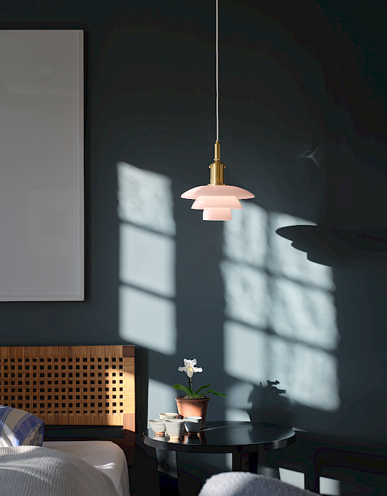 Das ursprüngliche Design der PH 3/3 Pendelleuchte von Poul Henningsen basiert auf seinem bekannten System mit drei Schirmen (auch bekannt als System PH), das auf das Jahr 1926 zurückgeht und sorgfältig berechnet wurde, um ein weiches und blendfreies Licht zu erzeugen. Inspiriert von Poul Henningsens Faszination für Licht und Farbe ist die PH 3/3 Pale Rose Pendelleuchte mit wunderschönen mundgeblasenen, blassrosafarbenen Glasschirmen ausgestattet, die auf der Unterseite sandgestrahlt sind, um optimales Licht zu erzeugen. Dazu gesellen sich Elemente aus gebürstetem Messing wie das Fassungsgehäuse und der Baldachin, die im Laufe der Zeit eine schöne Patina entwickeln, aber auch poliert werden können, um ihr Aussehen zu erhalten. Wo auch immer Sie sie aufhängen, die PH 3/3 Pale Rose Pendelleuchte taucht den Raum in ein gleichmässiges, weiches Licht und ist gleichzeitig ein wunderschönes dekoratives Element.
