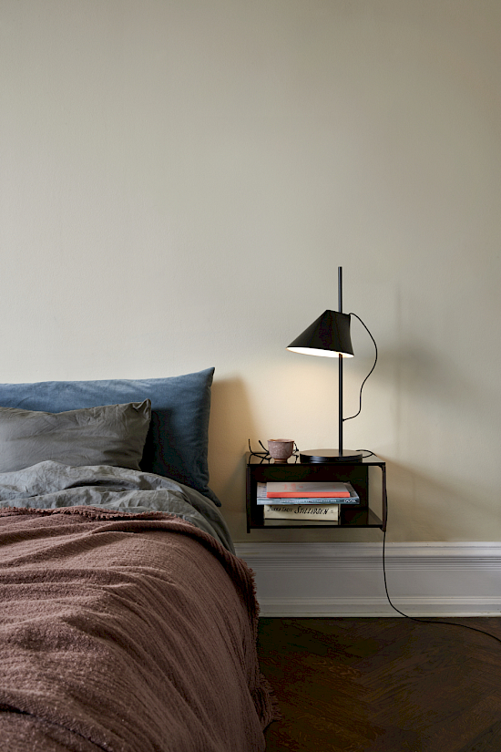 Die Leuchte strahlt vornehmlich blendfreies Licht nach unten ab. Die Position des Schirms kann angepasst werden, um den Winkel der Lichtabstrahlung zu optimieren. Eine schmale Öffnung im oberen Teil des Schirms strahlt ein weiches, nach oben gerichtetes Umgebungslicht ab. Ein einfaches mechanisches System sorgt für viel Bewegungsfreiheit, sodass Sie das Licht an Ihrem Arbeitsplatz, im Wohnzimmer usw. immer ideal ausrichten können. Die integrierte LED-Technik gewährleistet eine hohe Lichtqualität mit einer stufenlosen Dimmung zwischen 15 und 100 %. Die Timerfunktion schaltet das Licht automatisch nach vier oder acht Stunden ab. Es kann eine feste Helligkeitsstufe eingestellt werden, mit der die Leuchte jedes Mal eingeschaltet wird, wenn sie an das Stromnetz angeschlossen wird. Im oberen Teil der Stange befindet sich eine Taste, die als Schalter und Dimmer fungiert.
