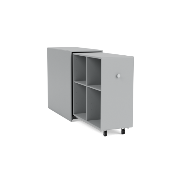 Das erweiterbare Montana Cargo C2180R Aufbewahrungsmodul hat 4 gleich grosse Fächer. Das Modul lässt sich rechts in Richtung des Benutzers per Auszug auf Rollen öffnen. Die Aussenmasse dieser Cargo-Komposition sind L80 cm, H74 cm und B36,4. Das Aufbewahrungsmodul kann für die persönliche Aufbewahrung mit einem Schloss versehen werden. Das Element verfügt über eine sanft schliessende Erweiterung, die in Kombination mit zwei unter dem Regal montierten Rollen für Stabilität sorgt und den einfachen Transport ermöglicht. Das Cargo-Modul eignet sich auch als Trennmodul zur Schaffung eines ruhigen Arbeitsbereichs an einer individuellen Arbeitsstätte oder zur visuellen Trennung von Arbeitsbereichen in einem Grossraumbüro. Die erweiterbaren Module sind in allen 41 Lackfarben von Montana auf Wasserbasis erhältlich und passen ideal in ein Homeoffice oder in Büroumgebungen aller Grössen. Die Möglichkeiten mit der Kollektion "Montana Cargo" sind nahezu unbegrenzt, da die Aufbewahrungsmodule mit einer Kombination aus Regalen, Schubladen, Ablagen und Türen erhältlich sind. Cargo kann farblich und von der Ausstattung her perfekt auf jedes Bedürfnis im Arbeitsalltag ausgerichtet werden.