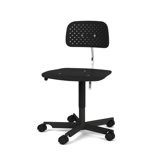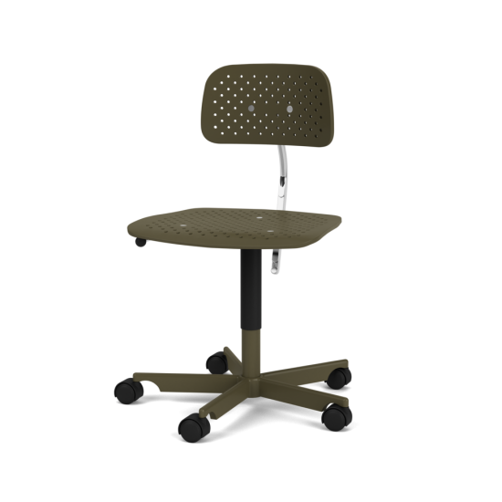 Kevi Air ist eine leichte Variante des Kevi-Bürostuhls. Die in Kunststoff gegossene Schale besteht zu 7 % aus Glasfasern. Der Sitz und die Rückenlehne des Stuhls haben ein perforiertes kreisförmiges Muster. Kevi Air passt gut in das moderne Büro und die leichte Oberfläche des Stuhls ist einfach zu pflegen. Der Stuhl ist in den Montana-Farben und optional auch mit gepolstertem Sitz erhältlich. Das Gestell besteht aus einem 5-Stern-Drehfuss aus Aluminium und die Rollen sind in Kunststoff oder Aluverdeckung wählbar.