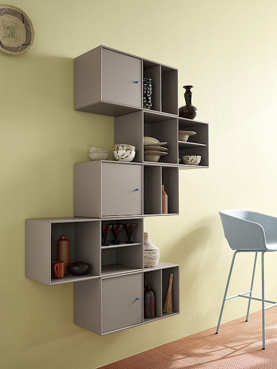 Das Montana-System bietet endlose Möglichkeiten das genau passende, individuelle Regal zu kreieren. Mit 36 Basismodulen, 4 Tiefen und 43 Oberflächen-Farben kann das Regalsystem konfektioniert werden. Das System besteht aus 12 mm MDF-Material. Im Jahr 2019 wurde das Montana-System mit dem EU-Umweltzeichen zertifiziert, das nachhaltige, hochwertige Möbel garantiert, die sowohl für die Umwelt als auch für das Zuhause sicher sind.