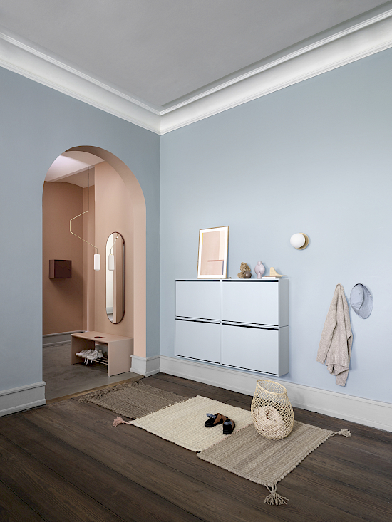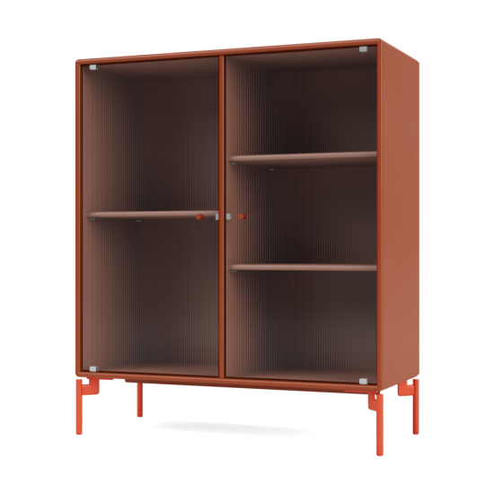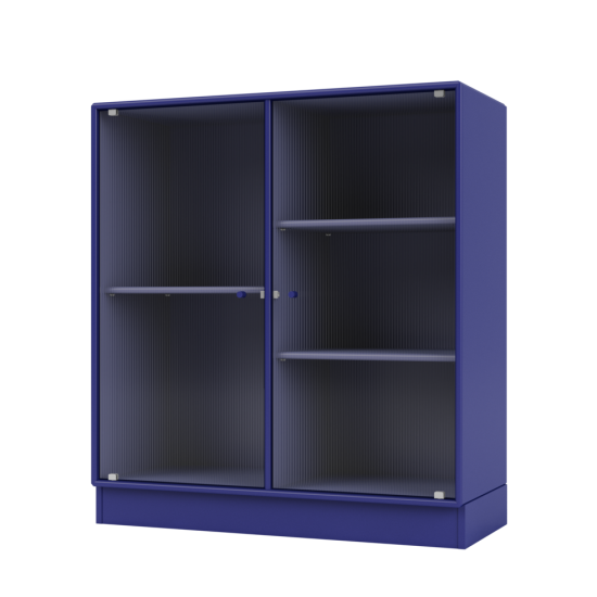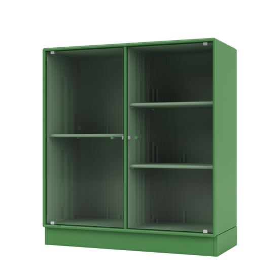 Der RIPPLE II Vitrinenschrank besticht durch sein elegantes Design mit zwei Türen aus geriffeltem Glas. Er ist vielseitig einsetzbar und kann sowohl als Oberschrank in der Küche als auch als stilvolles Displayregal im Wohn- oder Esszimmer genutzt werden. Der Schrank ist mit praktischen Aufhängebeschlägen, einem Sockel und Beinen erhältlich, die ihm Stabilität und eine ansprechende Optik verleihen. Für flexible Nutzung sorgen drei bewegliche Fächer mit Griffen, die ein einfaches Anpassen und Umordnen nach Bedarf ermöglichen. Erhältlich ist der RIPPLE II in den 41 attraktiven Lackfarben von Montana. Die Griffe in der gleichen Farbe wie der Schrank pulverbeschichtet sind.