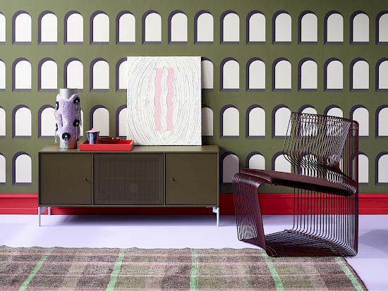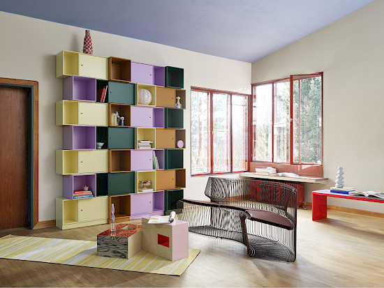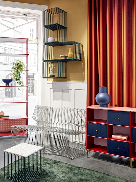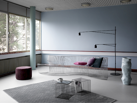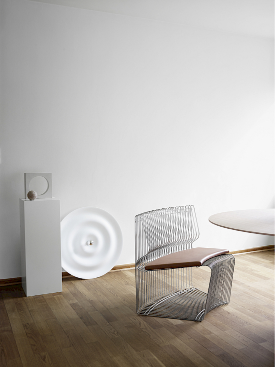 Pantonova ist ein modulares Sofasystem, das 1971 von Verner Panton entwickelt wurde. Pantonova kann mit geschwungenen organischen Formen kombiniert, aber auch einzeln als skulpturaler Stuhl verwendet werden. Die drei Pantonova-Module Linear, Concave und Convex können frei kombiniert werden, um geometrische und geschwungene Sofa-Anordnungen zu bilden. Pantonova besteht aus verchromtem Stahldraht, ist in der Farbe Black Red pulverlackiert und als Outdoor-Version aus Edelstahl erhältlich. Pantonova ist mit oder ohne Kissen erhältlich. Die Kissen sind in Leder, Stoffgewebe und Samt erhältlich.