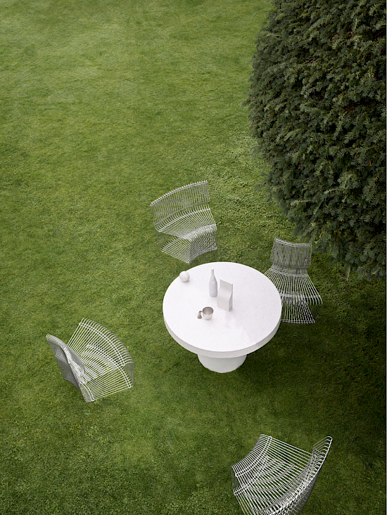 Der Pantonova Convex-Loungesessel eignet sich ideal als freistehender Einzelstuhl im Wohnzimmer, kann aber auch zu einem organischen und geformten halbrunden Sofa kombiniert werden. Der Stuhl eignet sich auch als skulpturales rundes Sofa für Hotellobbys oder Loungebereiche. Das Kissen für den Stuhl kann in Leder, Stoffgewebe und Samt erworben werden – diese sind mit Druckknöpfen um den Draht befestigt.