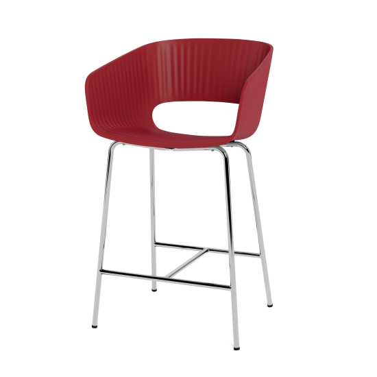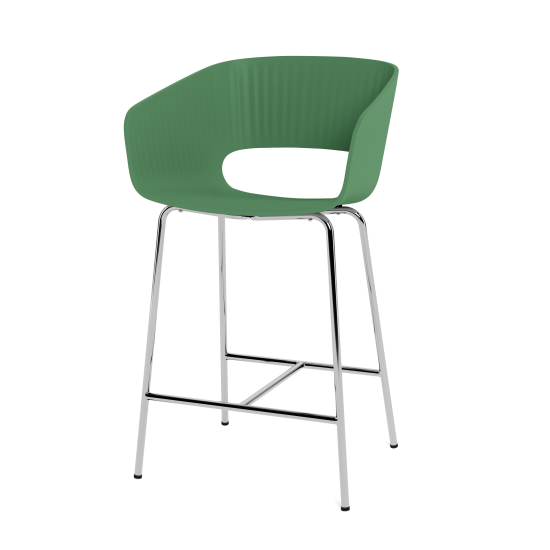 Der Thekenstuhl Marée 402 Counter passt zu einer Tischhöhe von ca. 95 cm und ist somit ideal für Küchen, Restaurants, Bars oder Hotels geeignet. Er ist als Schalenstuhl oder mit Sitz-, Innen- und Vollpolster in Textil erhältlich. Die Schale besteht aus recyceltem Kunststoff in den acht Montana-Farben Oat, Mushroom, Amber, Beetroot, Flint, Parsley, Anthracite und Black. Die drei gepolsterten Stuhlvarianten stehen in den Textilfamilien Remix 3, Raas, Re-wool, Steelcut 2, Steelcut Trio 3, Sabi und Hallingdal 65 – jeweils in unterschiedlichen Farben – zur Auswahl. Die Stuhlbeine in verchromter oder lackierter Ausführung sind in denselben acht Montana-Farben erhältlich. Der Stuhl ist nur zur Verwendung im Innenbereich geeignet.