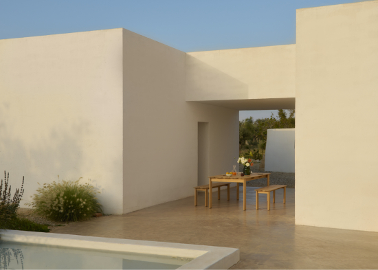 Die aus FSC™-zertifiziertem Teakholz gefertigten breiten Bretter und abgerundeten Kanten sorgen für eine warme, taktile Ausstrahlung. Eine dezente Fuge zwischen den Brettern lässt das Holz atmen und sich natürlich mit den Jahreszeiten verändern, während sie gleichzeitig einen ruhigen Rhythmus in die Oberfläche bringt.