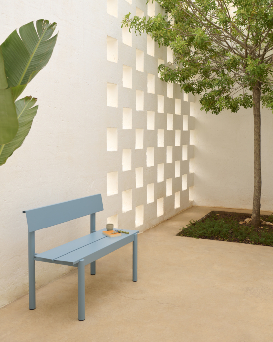 Die Linear Steel Bench bietet neue Perspektiven für moderne Outdoor-Möbel durch ihre geraden Linien entlang der gefalteten Kanten und den kleinen Abständen für einen einfachen Wasserablauf bei Regen. Die Gartenbank ist optisch klar und besticht durch eine zeitlose Ästhetik. Sie erhält ihren Charakter durch subtile Details und einen minimalistischen Ausdruck, so dass sie jede Umgebung im Aussenbereich aufwertet. Die Linear Steel Bank mit Rückenlehne wurde passend zum Linear Steel Table gestaltet. Sie wirkt aber auch wunderbar als einzelnes Designstück und ist in verschiedenen Farben erhältlich.
