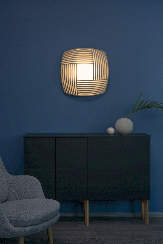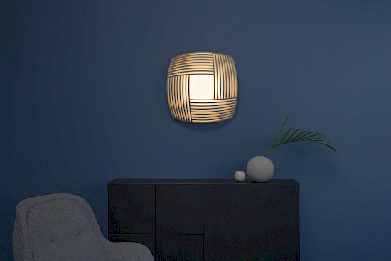 | Material | Formgepresste Birkenlamellen, fein texturiert pulverbeschichtetes Stahlgehäuse, Acryldiffusor |