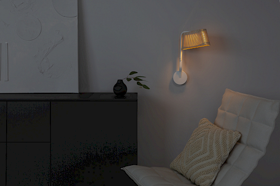 Die Wandlampe Owalo 7030 wurde 2011 von Architekt Seppo Koho entworfen. Sie ist ein ausdrucksstarkes Zeugnis skandinavischer Handwerkskunst, das klare Linien mit der Wärme natürlicher Materialien verbindet. In der Manufaktur in Heinola, Finnland, wird sie von versierten Schreinern aus PEFC-zertifiziertem Birkenholz gefertigt. Ihre feinen Lamellen verbreiten ein stimmungsvolles Licht, das Räume in eine behagliche Atmosphäre taucht. Ihre längliche, horizontale Form macht sie zur perfekten Wahl für moderne Wohnbereiche, wo sie eine harmonische Balance zwischen Funktionalität und Ästhetik schafft. Die offene Struktur der Holzlamellen erzeugt ein lebendiges Licht- und Schattenspiel, das die Wände in eine sanfte Bewegung hüllt,und zum Verweilen einlädt. Owalo ist auch als Tischleuchte, Pendelleuchte und Stehleuchte erhältlich.