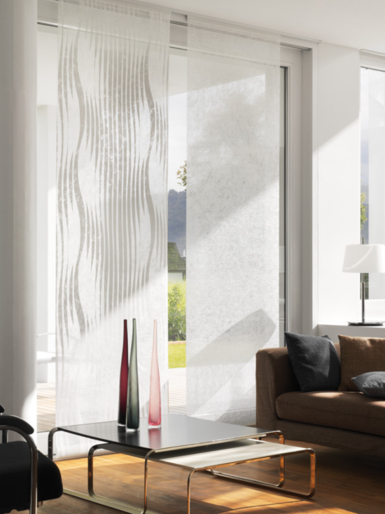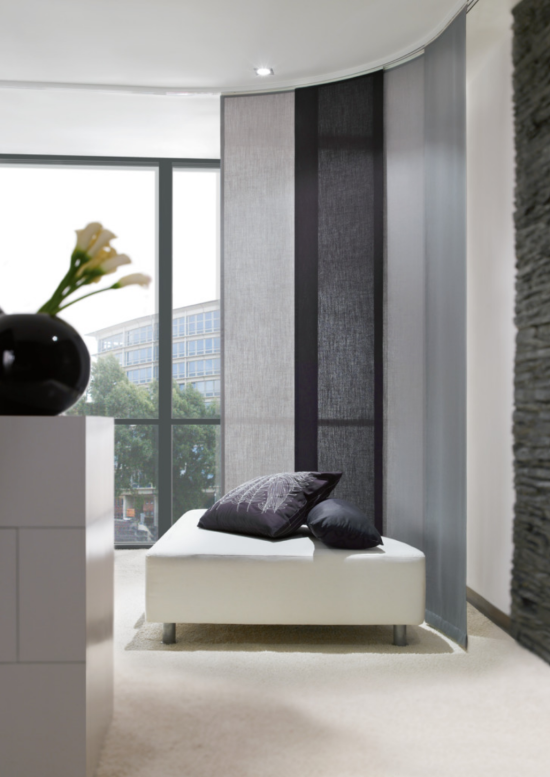 Das Konzept des Flächenvorhangs stammt ursprünglich aus dem japanischen Kulturraum. Als erstes Unternehmen boten wir dieses bemerkenswerte und kreative Design für den Innenbereich an. Flächenvorhänge können zur Beschattung oder als Raumteiler eingesetzt werden. Die Systeme sind in gerader oder gebogener Ausführung sowie mit manueller oder elektrischer Bedienung erhältlich. Flächenvorhang-Systeme sind das perfekte Mittel zur Beschattung und Dekoration grosser Glasflächen. Es können verschiedene Farben, Stoffe und Strukturen kombiniert werden, um so kundenindividuelle Designs umzusetzen. Die einzelnen Paneele lassen sich zur Reinigung und zum Austausch leicht entfernen.