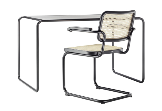 Der S 285/0 Schreibtisch, entworfen von Marcel Breuer im Jahr 1935 für Thonet, ist ein echter Bauhaus-Klassiker, der Stahlrohr und Holz auf eine Weise kombiniert, dass die Holzelemente wie schwebend wirken. Sein Gestell aus gebogenem, verchromtem Stahlrohr trägt eine Platte aus lackiertem oder furniertem Holz ist so eingefügt, dass alles leicht und offen aussieht. Breuer hat ihn so konzipiert, dass er kompakt ist und trotzdem genug Platz bietet, perfekt für Home-Offices oder Arbeitszimmer, wo er modern und funktional bleibt. Thonet fertigt ihn mit hochwertigen Materialien, die langlebig sind und eine schöne Patina bekommen. Ein Schreibtisch, der die "Neue Sachlichkeit" verkörpert und heute noch so aktuell ist wie damals.