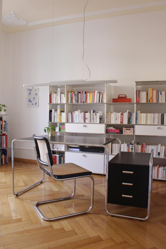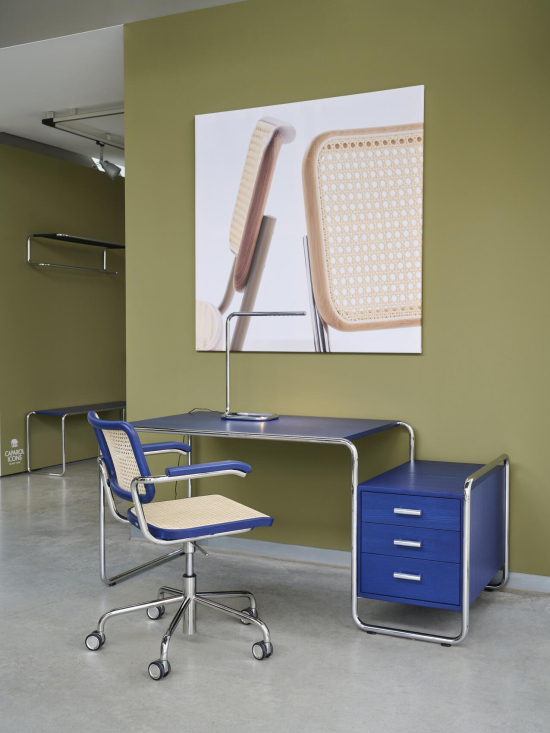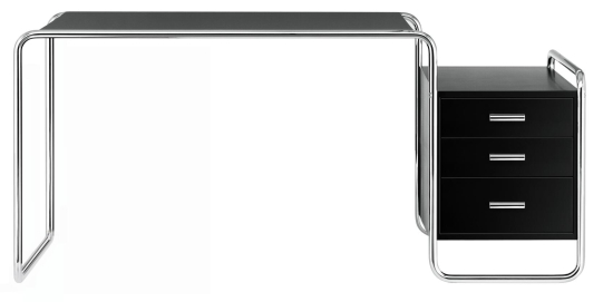 Der S 285/+ Schreibtisch, entworfen von Marcel Breuer im Jahr 1935 für Thonet, ist ein echter Bauhaus-Klassiker, der Stahlrohr und Holz auf eine Weise kombiniert, dass die Holzelemente wie schwebend wirken. Sein Gestell aus gebogenem, verchromtem Stahlrohr trägt eine Platte aus lackiertem oder furniertem Holz, und die Aufbewahrungselemente – Schubladen oder Tablare – sind so eingefügt, dass alles leicht und offen aussieht. Breuer hat ihn so konzipiert, dass er kompakt ist und trotzdem genug Platz bietet, perfekt für Home-Offices oder Arbeitszimmer, wo er modern und funktional bleibt. Die verschiedenen Varianten mit einem oder zwei Korpusselementen lassen sich spiegelbildlich anordnen, und Thonet fertigt ihn mit hochwertigen Materialien, die langlebig sind und eine schöne Patina bekommen. Ein Schreibtisch, der die "Neue Sachlichkeit" verkörpert und heute noch so aktuell ist wie damals.