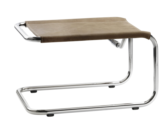 Der S 35 LH Hocker von Marcel Breuer aus dem Jahr 1930 ist ein echter Bauhaus-Klassiker, der mit seiner durchgehenden Linie aus gebogenem Stahlrohr alles in einem vereint und diesen doppelten Freischwinger-Effekt kreiert, der den Hocker so bequem macht. Die Bespannung aus Leder gibt ihm eine luxuriöse Note, während das Gestell für Leichtigkeit und Stabilität sorgt. Er wurde 1930 in Paris vorgestellt und fühlt sich heute noch visionär an. Ein Hocker, der Bewegung und Ruhe in einem vereint und Räume mit subtiler Präsenz bereichert.