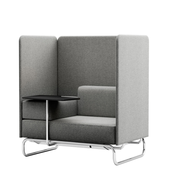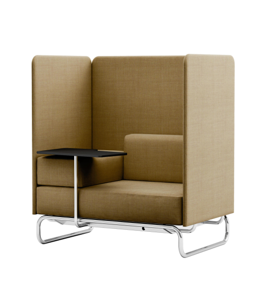 Inspiriert von der zunehmenden Verschmelzung von Arbeits- und Wohnbereichen wurde es 2020 von Studio Irvine weiterentwickelt, so dass es in den modernen Kontext von New Work passt. In den Sitzrahmen lassen sich je nach Bedarf baugleiche Arm- und Rückenlehnen oder Trennwände als Sicht- und Lärmschutz integrieren. Dadurch ist es vielfältig erweiterbar und findet dank variabler Seitenpaneele auch in Multi-Space-Bürokonzepten seinen Platz. Die Paneele bilden den Rahmen für unterschiedliche Kissen, die lose aufgelegt werden. Zudem können Anbautische montiert werden.
