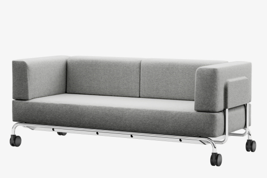 Inspiriert von der zunehmenden Verschmelzung von Arbeits- und Wohnbereichen wurde es 2020 von Studio Irvine weiterentwickelt, so dass es in den modernen Kontext von New Work passt. In den Sitzrahmen lassen sich je nach Bedarf baugleiche Arm- und Rückenlehnen oder Trennwände als Sicht- und Lärmschutz integrieren. Dadurch ist es vielfältig erweiterbar und findet dank variabler Seitenpaneele auch in Multi-Space-Bürokonzepten seinen Platz. Die Paneele bilden den Rahmen für unterschiedliche Kissen, die lose aufgelegt werden. Zudem können Anbautische montiert werden.