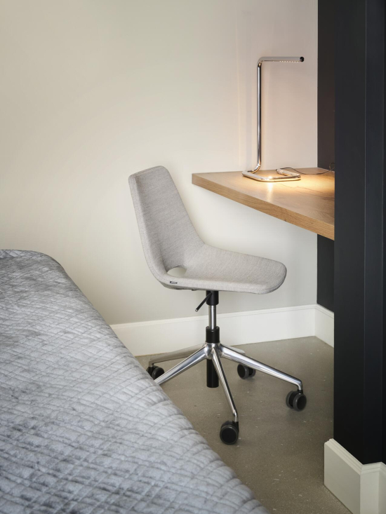 Der voll gepolsterte S 661 PVDR, eine Variante des klassischen S 661 von Günter Eberle aus den 1950er Jahren, ist der ideale Drehstuhl für den Alltag im Büro oder den Arbeitsplatz zu Hause. Mit seiner Formholz-Sitzschale mit Vollpolsterung fühlt er sich natürlich an, und die weichen Rundungen machen ihn überraschend bequem, auch nach Stunden. Das Stahlrohrgestell, verchromt oder pulverbeschichtet, dreht sich geschmeidig, und die verstellbare Höhe passt sich einfach an. Ob für Meetings, Homeoffice oder das Atelier – er ist robust, leicht und unauffällig elegant. Ein Bürostuhl, der funktioniert, ohne viel Aufhebens darum zu machen.
