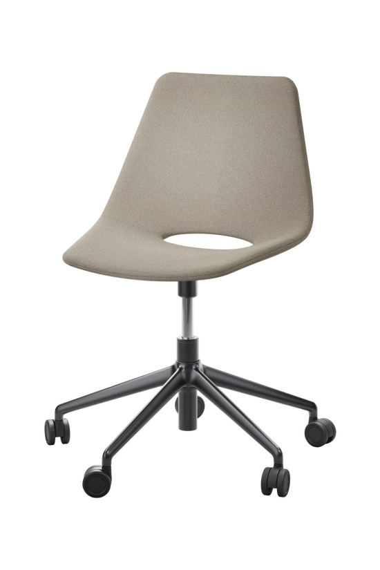 | Gestell | 5-armiges Aluminum-Drehkreuz ø640mm (ohne Rollen), Drehkreuz wahlweise Aluminium poliert oder pulverbeschichtet RAL9005, Gasdruckfeder und Sitztraverse RAL9005 pulverbeschichtet, Handhebel verchromt. |