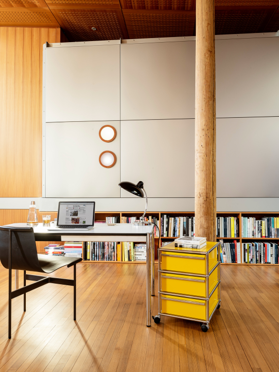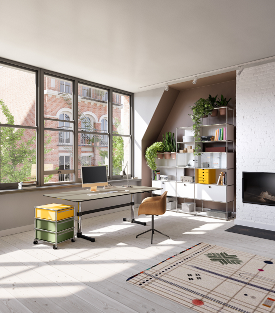 Das USM Haller System ist ein modulares Möbelbaukasten-System aus verchromtem Stahlrohr und individuell gefüllten Paneelen (Metall, Glas, Holz oder Textil). Fritz Haller entwarf das System 1965. Es ermöglicht unendliche Kombinationen – von Sideboards über Regale bis hin zu Raumteilern. Die klare, industrielle Ästhetik passt in Wohnräume, Büros oder öffentliche Bereiche und bleibt dabei immer funktional. Ein System, das mitwächst und nie aus der Mode kommt.