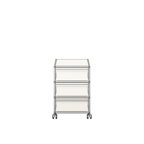 Der QS M26 Rollcontainer von USM Haller ist ein praktisches, hochwertiges Möbelstück, das sich problemlos in jeden Einrichtungsstil einfügt. Mit drei Schubladen à 175 mm Höhe bietet er ausreichend Stauraum für Ordner, Schreibzeug oder persönliche Utensilien – ideal unter dem Schreibtisch im Homeoffice oder im Büro. Das Gegengewicht sorgt für sicheren Stand, auch bei voller Beladung, und die Rollen machen ihn flexibel verschiebbar. Das Gestell aus verchromtem Stahl ist stabil und zeitlos, die Schubladen sind präzise eingepasst und leicht zu öffnen. Ein Rollcontainer, der einfach funktioniert und mit seiner klaren Form jeden Arbeitsplatz aufwertet.