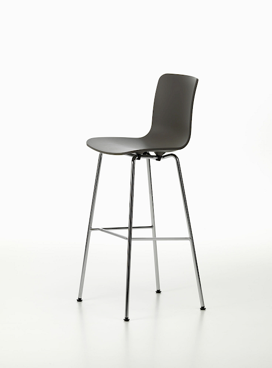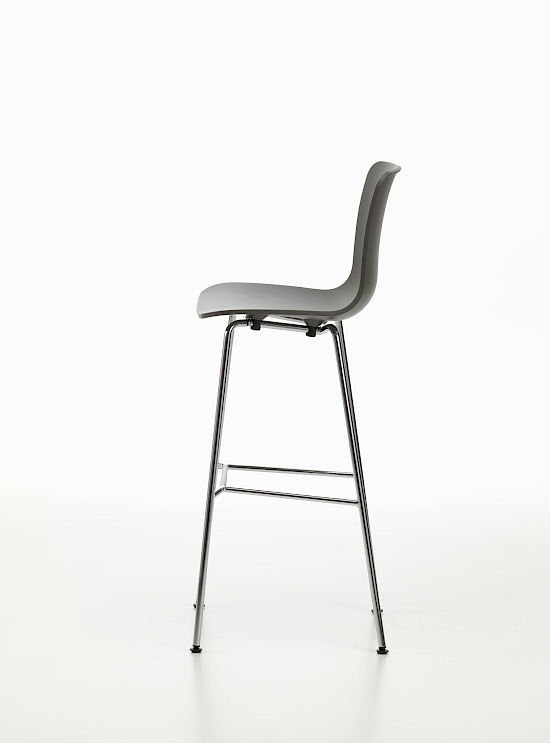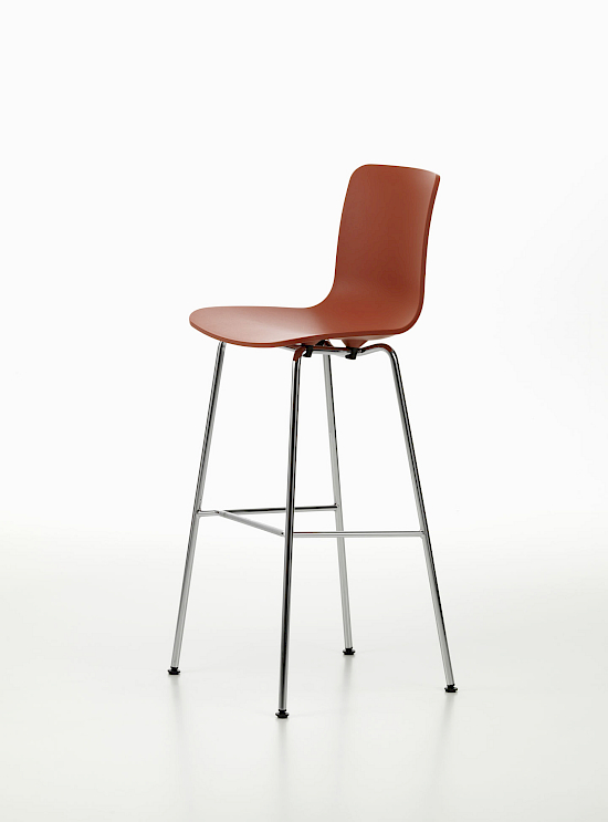 HAL ist Jasper Morrisons Interpretation eines Schalenstuhls in der Tradition des Plastic Chair von Charles und Ray Eames, der dank verschiedener Untergestelle vielseitig eingesetzt werden kann – vom Esstisch bis zum Besprechungsraum, von der Bar bis zum Auditorium. HAL RE ist die Weiterentwicklung mit einer Sitzschale aus recyceltem Kunststoff. HAL RE Stool High eignet sich für Tische und Bars von ca. 110 cm Höhe – und damit auch für Büros mit Meeting- und Arbeitstischen auf Stehhöhe. Mit den Sitzkissen Soft Seats können weitere farbliche Kombinationen geschaffen werden.