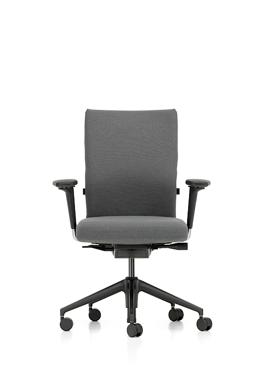 | Armlehnen | mit in Höhe und Breite einstellbaren 2D-Armlehnen oder mit in Höhe, Breite und Tiefe verstellbaren, um 360° drehbaren 3D-Armlehnen. Armlehnenträger jeweils in Aluminium poliert oder Aluminium pulverbeschichtet basic dark oder soft grey (entsprechend Rahmenfarbe). Armlehnenhülse aus Polyamid entsprechend Rahmenfarbe in basic dark oder soft grey. Mit polyurethanschaumfreier (F) Auflage in basic dark (bei Rahmenfarbe basic dark) oder dimgrey (bei Rahmenfarbe soft grey). Wahlweise auch Ringarmlehnen für den Konferenzbereich aus Aluminium-Druckguss poliert oder beschichtet basic dark oder soft grey (entsprechend Rahmenfarbe). |