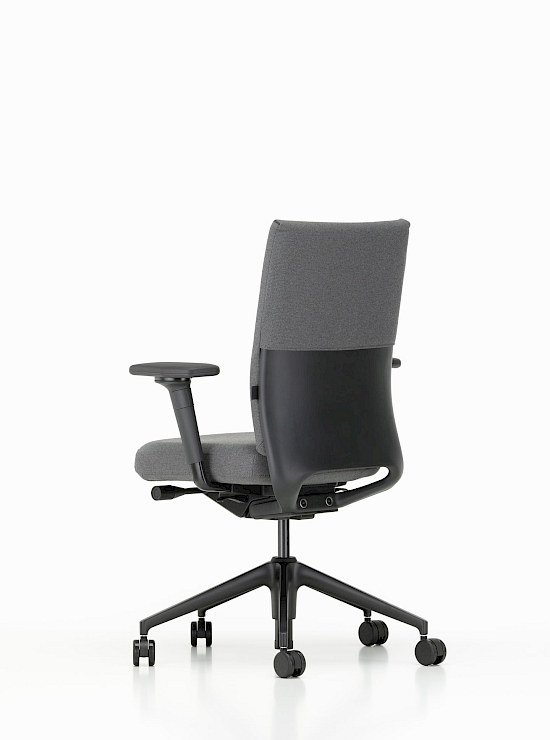 Die voll gepolsterte Rückenlehne bietet hohen Komfort und gibt ID Soft und ID Soft L mit ihren klaren Linien einen formal reduzierten, zurückhaltenden Auftritt. So fügt sich ID Soft in die unterschiedlichsten architektonischen Umgebungen ein. Der Rücken ist in der Höhe verstellbar und sorgt für eine gute Stützung im oberen Schulterbereich. Die Möglichkeit zur exakten Anpassung der Stützung im Lendenwirbelbereich verhindert das Abkippen des Beckens nach hinten.