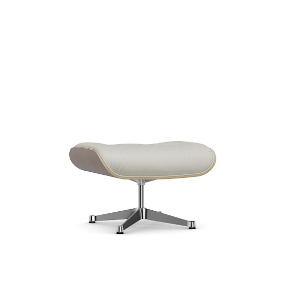 Die Neuinterpretation des Klassikers als helle und leichte Version durch Vitra erfolgte in Zusammenarbeit mit dem Eames Office und mit der holländischen Designerin Hella Jongerius. Alle Elemente des Sessels, von den Reissverschlüssen bis zu den Gleitern, sind aufeinander abgestimmt. Die Lederpolster sind in hell lasierte Furnierschalen aus Nussbaum eingebettet, der Aluminiumfuss ist poliert.