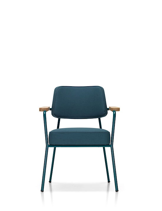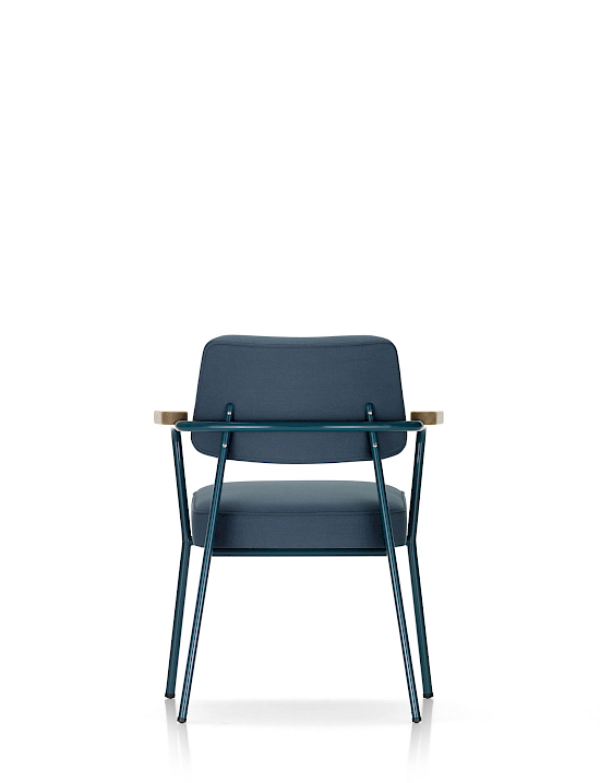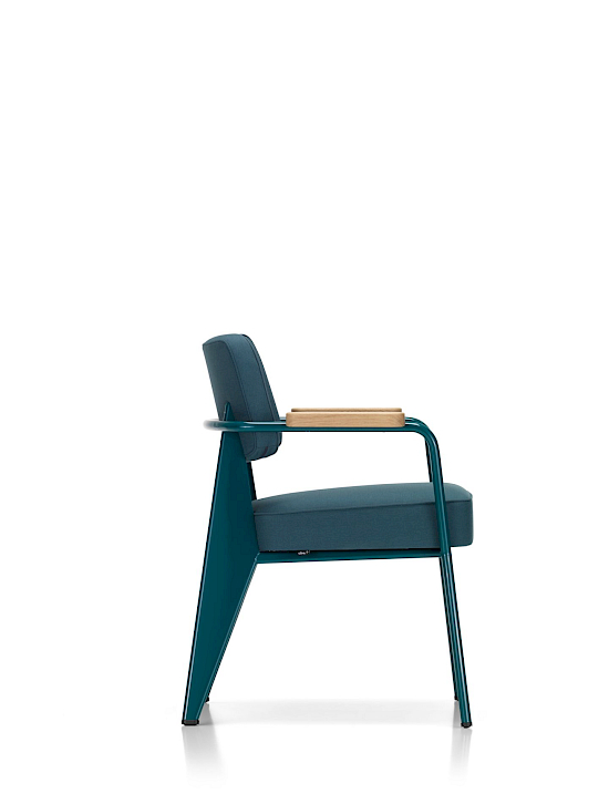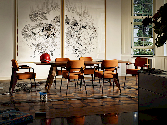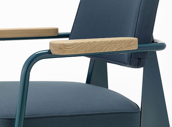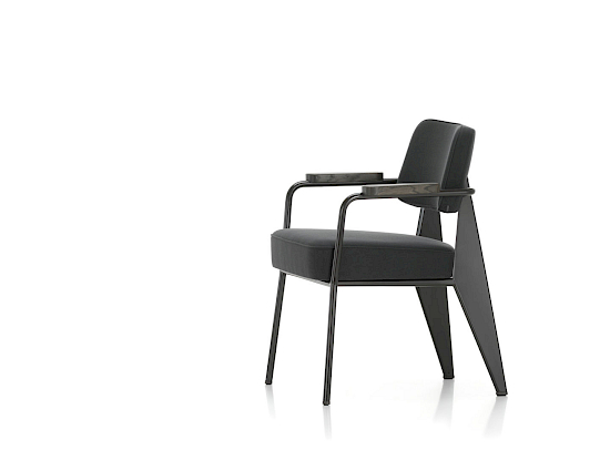 Der Fauteuil Direction ist ein komfortabler Sessel, mit dem sich bequem am Tisch sitzen lässt. Er spricht die für Prouvé so typische Formensprache der Ausrichtung nach konstruktiven Gesichtspunkten. Der Stuhl ist ein Blickfang und eignet sich ideal für das Homeoffice, wo er insbesondere in Kombination mit dem Schreibtisch Compas Direction einen individuellen Akzent setzt. Als bequemer Stuhl am Esstisch sorgt er für ein kreatives Raumbild und ist zudem sehr bequem. Darüber hinaus macht der Fauteuil Direction mit seinen vielen Farben in Leder oder Stoff auch in eleganten Lobbies, gastronomischen Betrieben oder Wartebereichen eine gute Figur.