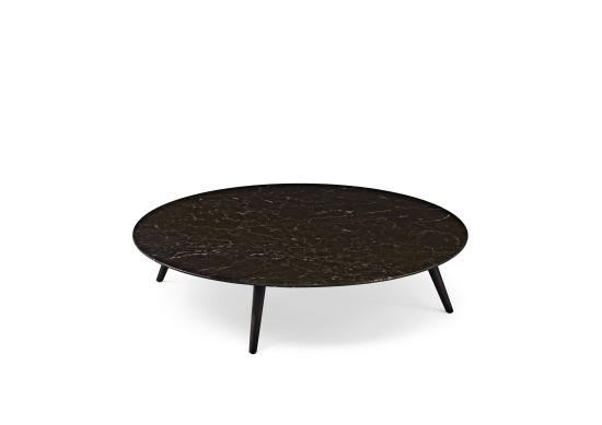Der 375 Couchtisch T2 nimmt dieselbe Materialsprache wie der T1 auf – Marmor auf Massivholz – und übersetzt sie in ein grosses, flaches Format, das als zentrales Element eines Wohnzimmers wirkt. Die breite, runde Platte mit ihrer einzigartigen Steinzeichnung dominiert nicht, sondern gibt dem Raum einen materiellen Anker. Das geölte Massivholzuntergestell hält die Platte mit sichtbarer Leichtigkeit. Der T2 eignet sich als Couchtisch in grosszügigen Wohnzimmern oder offenen geschäftlichen Loungezonen, in denen Naturstein als Gestaltungselement bewusst eingesetzt wird.